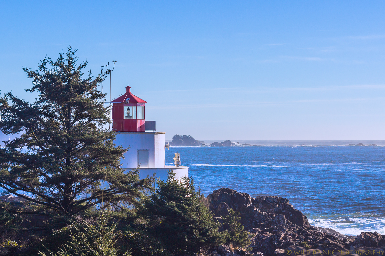 The Amphitrite Point Lighthouse watches over the Graveyard of the Pacific on a sunny day