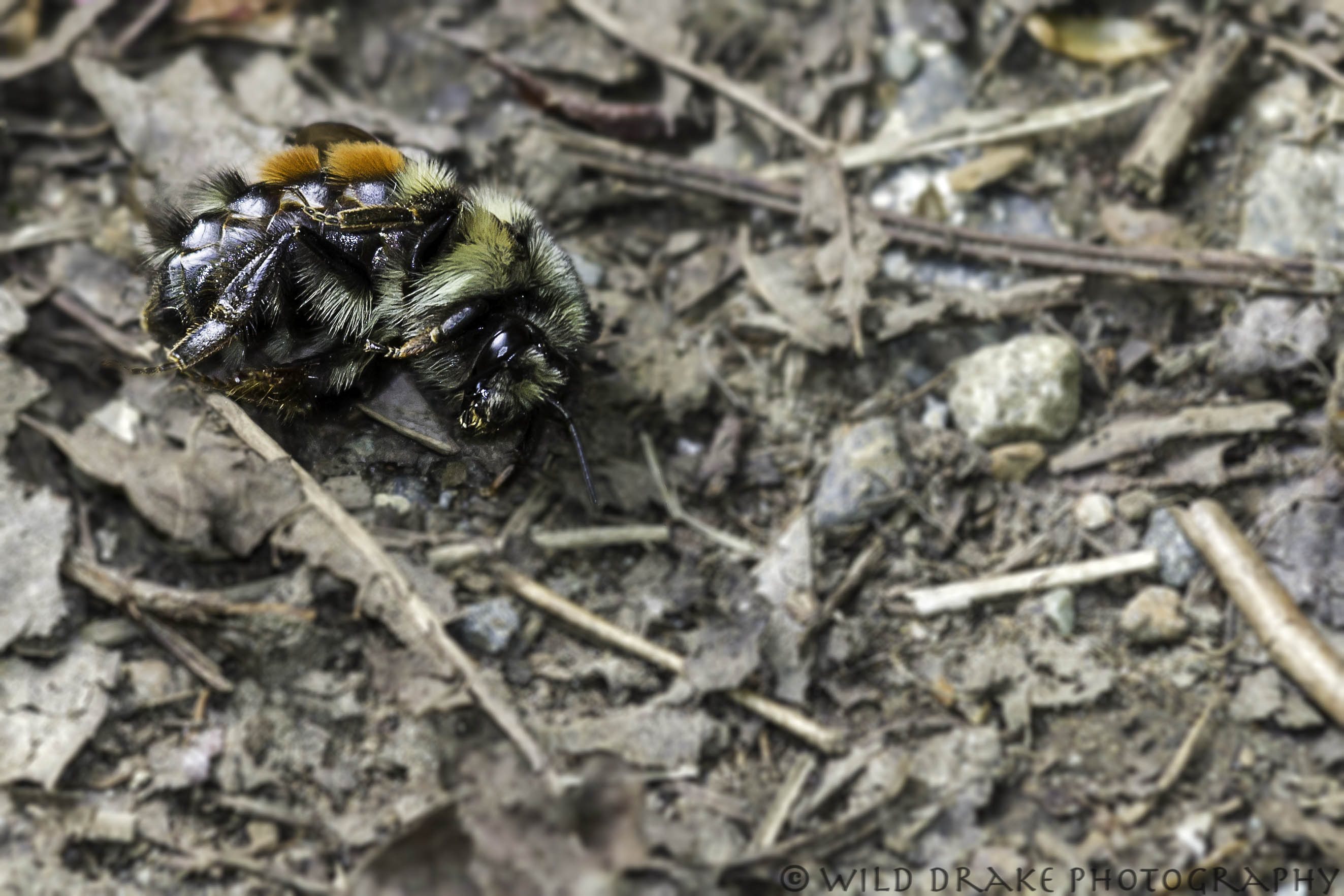 There were birds chirping all around, but other than a quick glimpse as they flitted from tree to tree, they kept out of sight. Little bugs and insects were plentiful, and there were even a number of bees buzzing around. For the most part, the bees were too quick to focus on or get a good look at. One poor guy, however, was lying lifeless on the path. Even in that state, he looked impressive.