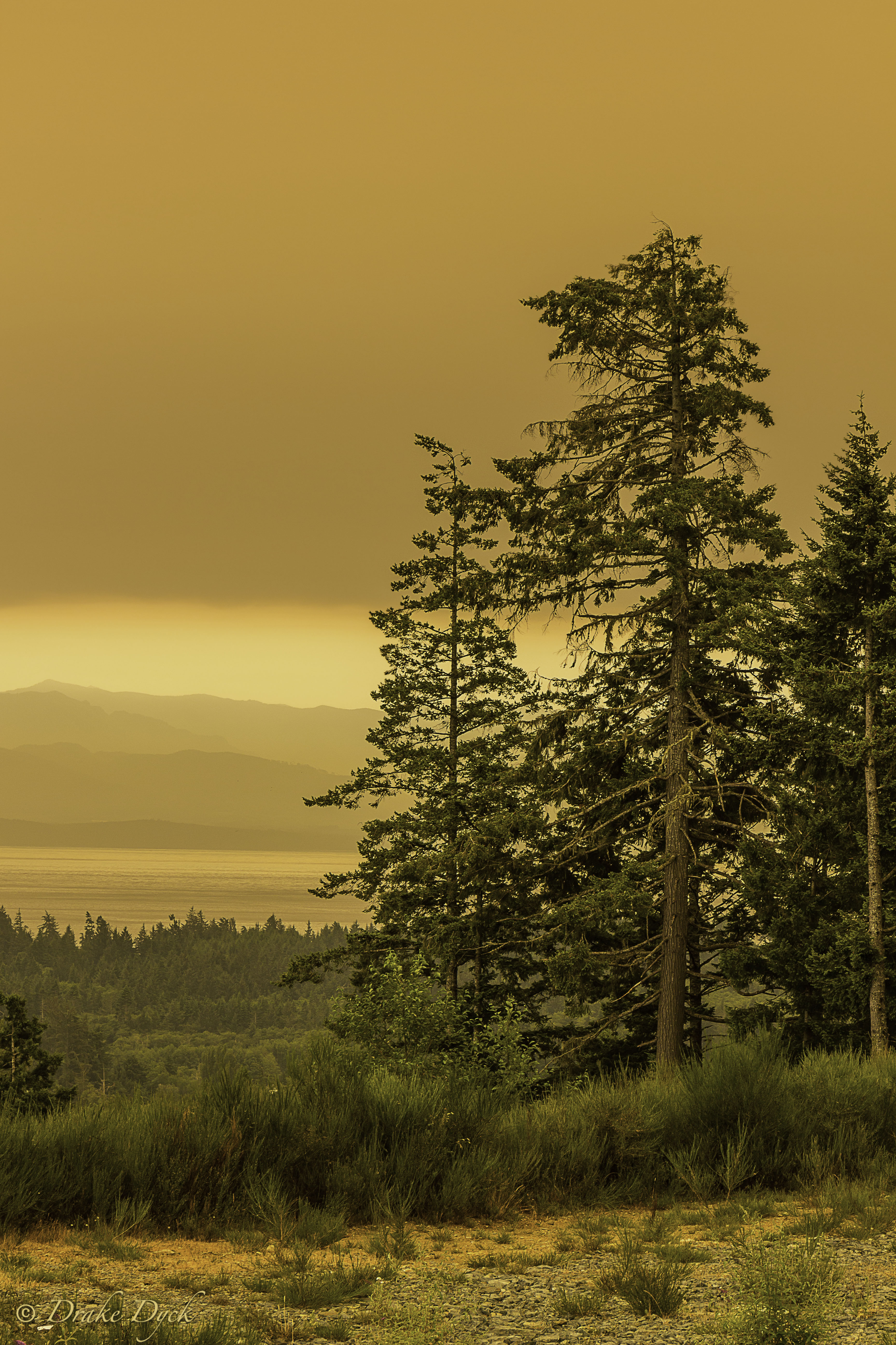 Keep in mind that I have only done minor cleanup of the images and not used any filters or special effects to get the orange colour. That is pretty much what it looked like from the top of a nearby hill in Sooke. In an area like this with a lot of trees and brush around, it makes you think a little more about being careful and plans to evacuate in case of an emergency. This area is fine, but I’ve heard that certain areas in the Province are under evacuation alert, where they may have to flee on a moments notice if the winds shift and the fires get more out of control.