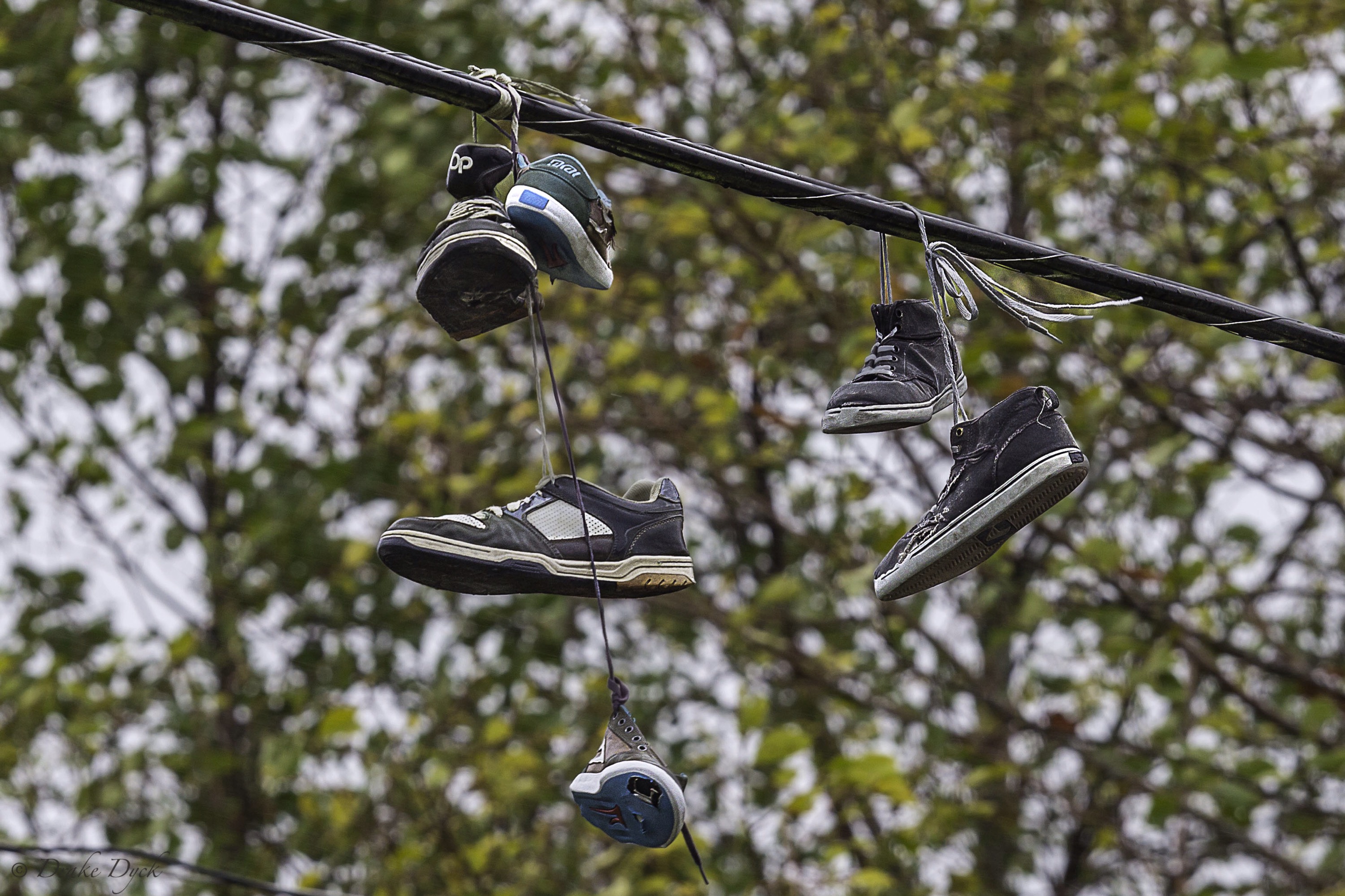 According to Wikepedia there are many possible explanations for Shoe Tossing but no one specific reason or meaning behind it. I don’t pretend to have an answer, I’m just creating the images.