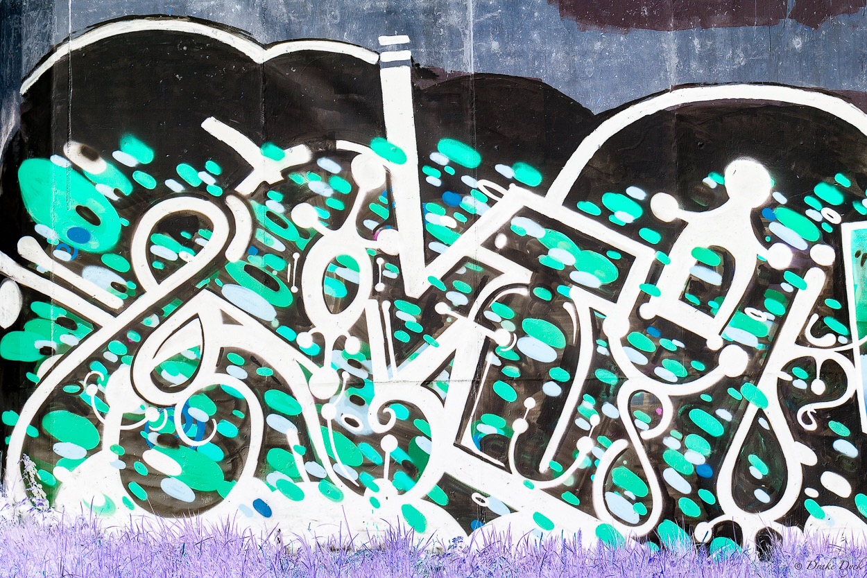 Colourful GraffitiLooking back at the bridge, you can see several examples of the graffiti. What you can’t see from a distance, is the rubbish left behind, like a large pile of used spray paint cans and a rusted bike frame.