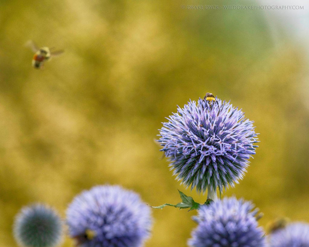 The gardens and castle at Hatley Park are another favourite location of mine to go for photography. There were lots of bees in this particular area of the gardens and so I was getting some shallow depth of field shots of them on these thistles, when I saw one approaching a thistle-head that another bee was crawling on. I was able to adjust my position and capture this image that really makes me happy every time I look back at it.