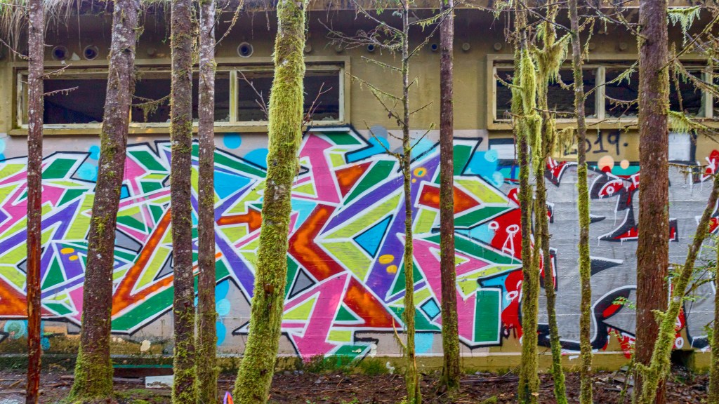 The first part of the hike was an easy walk along the highway from the parking area, but it started to rain a bit, so I put my rain cover over my backpack and hand carried my tripod. The trail soon turned into the bushes and at first it was a pretty easy walk up a gentle slope towards the remains of an old building. Unfortunately, I wasn’t able to learn the origins the building and it had long since fallen into disrepair.