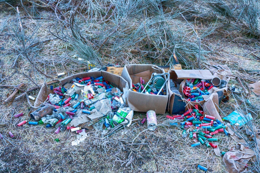 An Old Campfire Rock Ring and Pile of Shot Shells