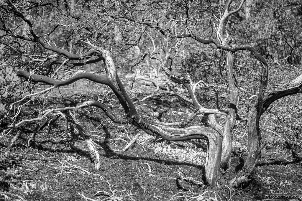 After circling around the plane for some time and getting some good shots, I started to head back along the trail and suddenly realized that I no longer had my tripod. The area around the plane was close so I didn’t use it there, but I backtracked and circled a couple of times, however, was not able to locate it. On the way back up the trail I searched for it, but again, my search was unsuccessful. The only thing I can think of that makes sense, is when I clipped it on the backpack on the way up the trail, the latch must not have been secure, and on a later stop, it must have let go when I placed the bag on the ground. The tripod then may have rolled off the trail and hidden itself from my view. I had been thinking of eventually replacing the tripod with a better one and relegating that one to a backup, but now I had no backup or main tripod. I have since ordered a new one and it should be here within days.