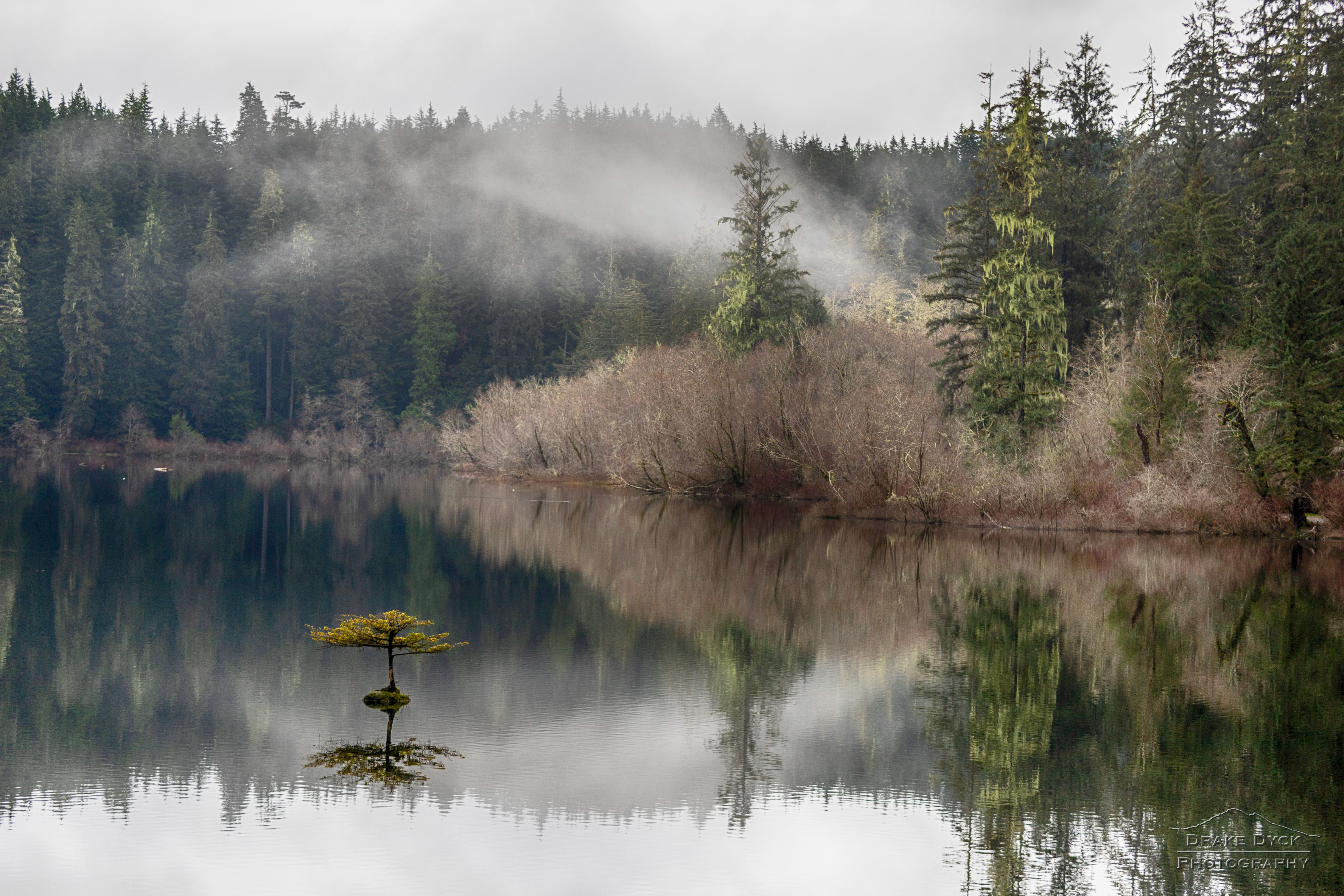 Probably one of the most photographed single trees on Vancouver Island, this tree on Fairy Lake can look so different depending on the time of year and weather conditions. Usually I select a tighter crop to make the tree more prominent, but in this case I thought the wider view with the reflections and little bit of fog really gave it a better context and added to the feeling of being there.