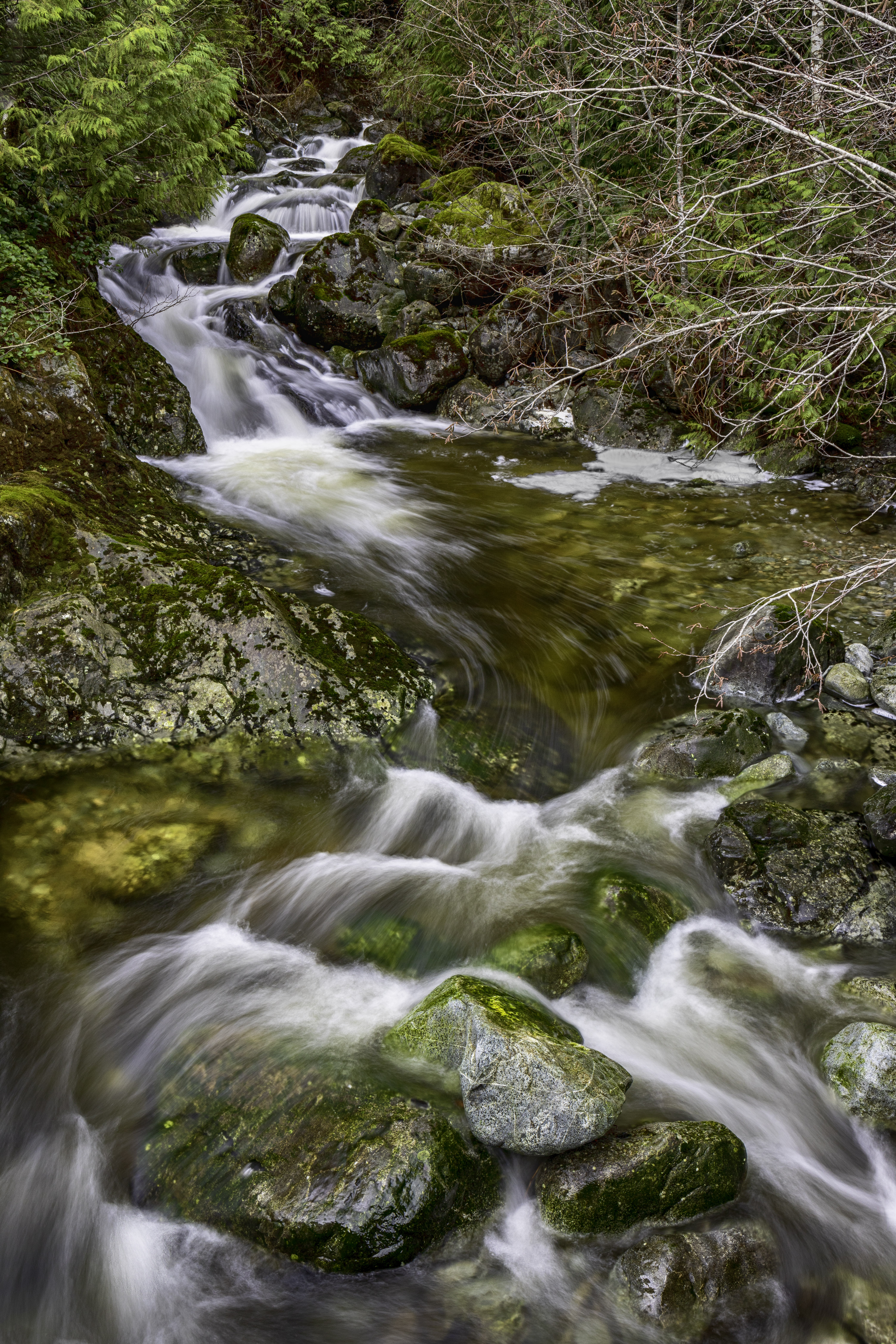 After a morning in spent in some of the last old growth forest on Vancouver Island, I explored the backroads and came across this small creek and waterfall.